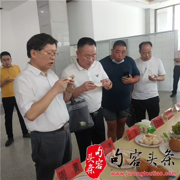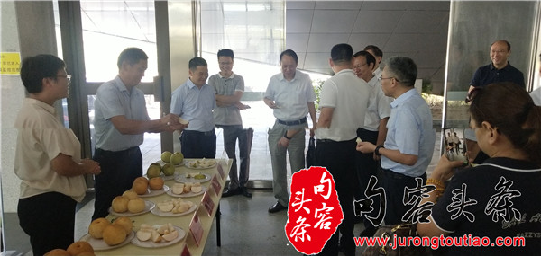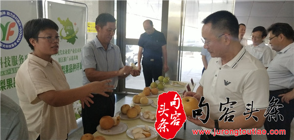 句容头条讯 9月11日上午,江苏现代农业梨产业技术体系镇江推广示范基地在句容举办了优质梨果品鉴活动,活动除展示了镇江地区传统种植“三水”品种外,还展示了近年来示范基地选育出的适应性、丰产性、商品性均较高的“苏翠1号、镇选3号、秋月、凉丰”等优质新品种。基地团队成员邀请与会的示范户和参加的省、市级领导现场进行了梨果评鉴,受到与会代表的高度好评。