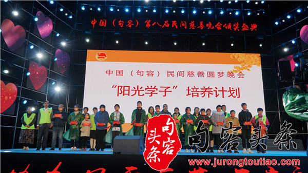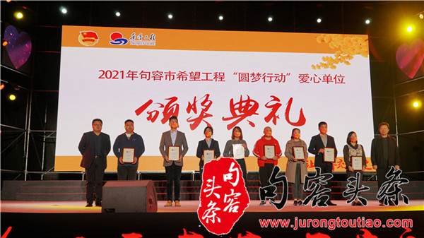 为了感谢各大爱心人士和爱心企业的支持,慈善晚会也为各大爱心企业和爱心人士颁发了爱心奖牌,举行了“2021年民间力量助农、助学代表颁奖仪式”、“2021年句容市希望工程‘圆梦行动’爱心单位颁奖仪式”,肯定各大爱心企业为公益所作出的付出,鼓励更多的人一起关注公益事业并推动公益事业的发展。另外,晚会还举行了“同心红志愿者联盟授旗仪式”,“‘阳光学子’培养计划”,“李新夫妇”‘希贤’奖学金计划。
