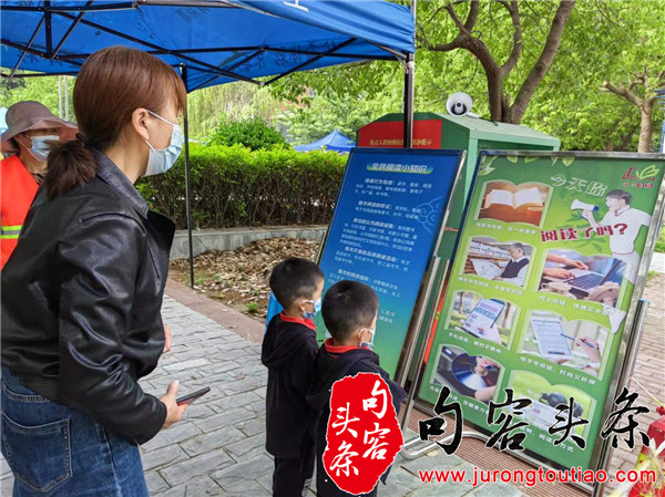在中凌社区居委会核酸监测点,社区现场开展“书香句容”阅读推广活动。等候区,志愿者积极向群众推广数字农家书屋,引导群众扫描二维码,进行数字阅读。市民做完核酸检测采样后,领到了全民阅读倡议书和赠送的书籍,“开展这个读书日活动非常有意义,感觉等待采样的时间都变短了,现在人人都喜欢玩手机,可以推动大家多阅读,从书籍中汲取抗击疫情的力量。”