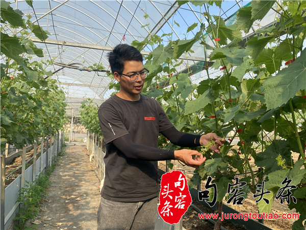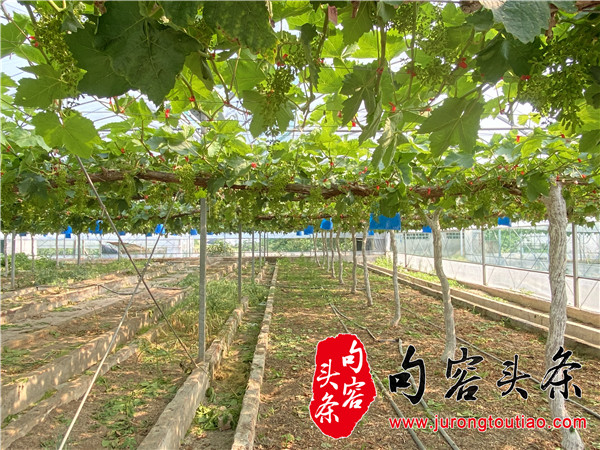 句容头条讯 5月,葡萄生产进入关键期,位于句容市江苏农博园内的新禾果园里热火朝天,公司负责人岳建涛正在大棚里查看葡萄长势,对阳光玫瑰等葡萄进行疏果。
