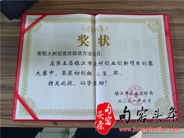 葡萄的品质提升了,岳建涛经营的葡萄园的口碑也变得越来越好。“去年受疫情影响,增加了邮政生鲜渠道,我们的葡萄销往北京、上海大城市以及周边地区,销售渠道主要以微信群、客户群等线上渠道为主,每年发出快递约两、三千箱。”岳建涛说。葡萄一挂果,就被来自南京、上海以及周边地区的客户抢空。他还通过邮寄的方式销售,销往更远的海南、黑龙江、宁夏等地,年收入也在逐步稳定。岳建涛的“葡萄平架大树冠栽培高效新模式”入选2021年镇江市大学生优秀创业项目和2020年省级大学生优秀创业项目。