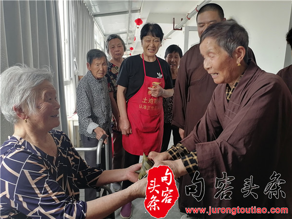 句容头条讯 6月1日上午,端午节即将来临之际,丹阳延陵九里季子庙祟福寺景区的工作人员,他们代表季子庙景区,将刚刚包好煮好的粽子和鸡蛋来到丹阳大吕村为民养老院,为养老院内的40多名入住老人送上了粽子、鸡蛋,并祝老人们端午节快乐,健康长寿。