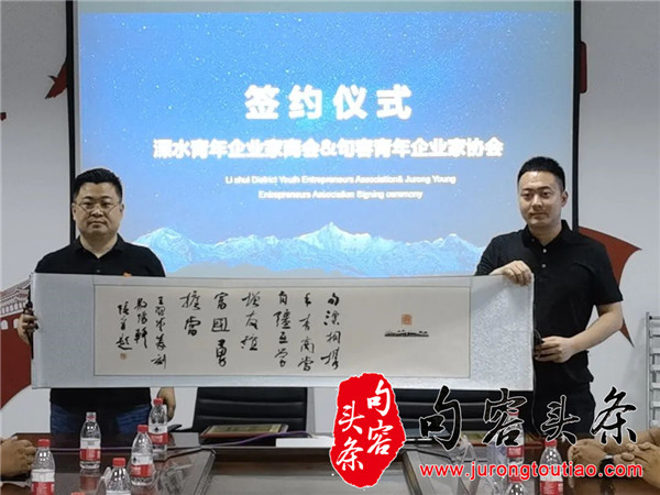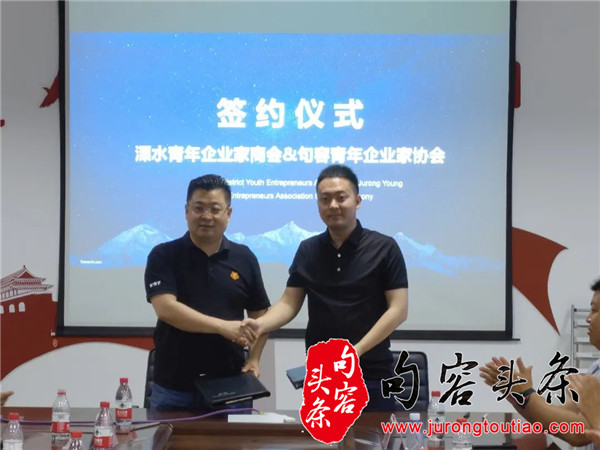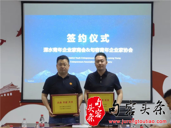 句容青企协企业家代表与南京市溧水区青年商会的企业家代表开展座谈交流并签署友好商会协议。