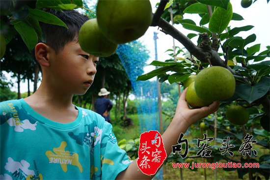 句容头条讯(图文/杨洽 丁璇)人们常说“庭前八月梨枣熟”。现在虽然还没有到八月,但瓜果盛季似乎提前了,一个品种接着一个品种。桃子、西瓜等旺季还没完全退场,梨子又早熟了。日前,记者在句容城南机场路方向约1.5公里处,“万福源农庄”马路对面的许老爷的自留地里,看见颗粒饱满可爱诱人的翠冠梨挂满枝头。