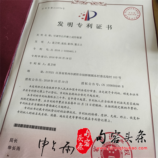 溧阳白芹已有800多年历史,是无数美食家赞不绝口的江南时蔬“一绝”,也是溧阳家家户户饭桌上少不了的时令菜。2005年,溧阳白芹进入钓鱼台国宾馆,成为国宴美肴, 2007年获得中华人民共和国原产地证明商标,2008年被评为江苏省名牌产品,2010年又成功申报农业部地理标志产品。然而,由于溧阳白芹种植过程非常复杂辛苦,先后包括平地、施肥、做垄、开沟、排种、壅土等工艺,工作效率低,劳动强度大,特别是壅芹深埋“白化”的过程较长,被称为”埋在土里的菜”。还因其在冬季成熟上市,寒冷的冬天工人还得穿着雨靴进入水沟内收割,辛苦程度不言而喻。因而本地种植户越来越少。为了振兴这一传统产业,从小在农村长大、有着深厚农业情结的易卫明萌生了种植白芹的想法。2015年,他毅然放弃在城市住别墅、开豪车的优渥生活,带着多年做工程、开酒店赚来的“第一桶金”,在亲朋不解的目光中,毅然绝然地回到家乡别桥,开始了他种植白芹的二次创业之旅。第一年他试种了十几亩。在取得成功的基础上,第二年他开始承包了300亩土地,但由于实行传统种植工艺,费时、费工、费力,成本高,效率低,一下子亏损了十几万。亲朋们都劝他就此放手,可生性倔强的他,只有认定是正确的事,九头牛也拉不回。他先后到日本、台湾以及欧洲等地的农业公司、基地参观考察学习取经,从而开阔了视野。接着,他下了三着棋:第一着棋是发明机器取代人工种植。为了减轻传统种植过程中繁重的体力劳动,心智活络的易卫明凭借自己做木工时爱发明创造的功底,经过两年的摸索,先后投资300多万元,经过上万次试验,终于研究设计制造出白芹施肥机、白芹排苗(播种)机、白芹壅土机、白芹收割机等多种农业特种机械,获得10多项国家专利,开创了溧阳白芹史上机械种植的先河。使白芹种植彻底摆脱了传统而艰苦的人工劳作的落后状况,生产成本每亩减少约60%。