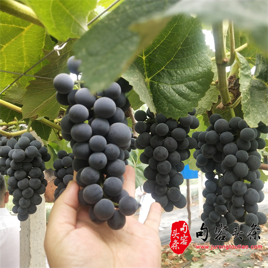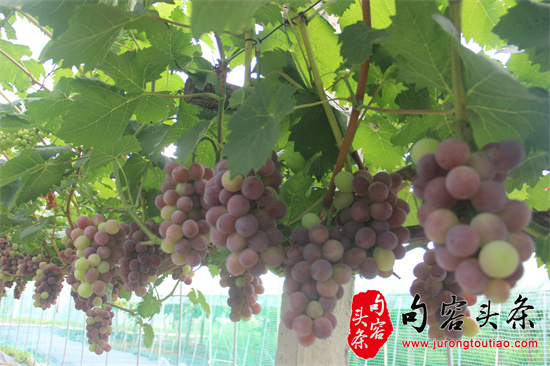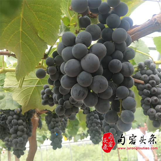 在紫金红霞葡萄架下,只见串串葡萄在阳光折射下,有的泛着紫红,有的泛着青光,颗粒不大不小,晶莹剔透;而紫金早生更是奇特,果型不大,呈深蓝色,煞是可爱,被誉为“葡萄中的蓝莓”。据张奎峰介绍,因为是亚夫科研示范新品,种植面积不是很大,但,口感非常好,清香爽口,葡萄刚成熟就预售一空,每串卖到50元,每斤划下来至少50元以上,价格比其他品种葡萄高很多。