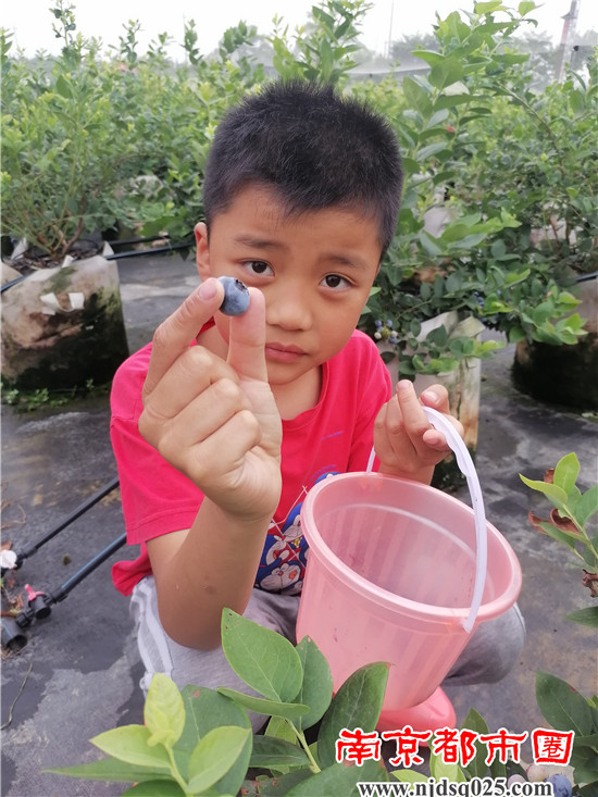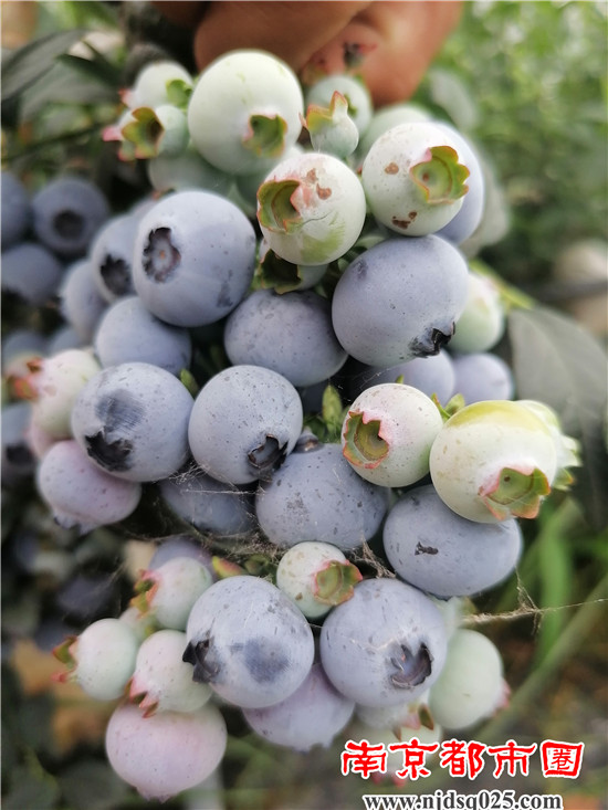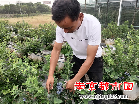 种植蓝莓的主人周飞飞说:“他于三年前在这里开始进行无土栽培几个蓝莓品种,去年小盆栽的蓝莓喜获丰收,但是数量有限。今年春天开始在这里承包4亩多地用大圆袋装上木屑之类的填充物(无土壤)进行试栽,没想到也很成功。他用无土栽培的几个新品种蓝莓一上市就得到了懂得蓝莓价值的青睐。这批蓝莓在5月底上市后镇江市区及周边城镇的客户有时预约来采摘,有时电话定购送货上门。但是大多数都游客或村民还没有真正了解蓝莓的营养价值,所以散客进蓝莓园采摘的不是很多。他的蓝莓园不仅可以采摘蓝莓直接食用,而且游客们还能连桶(一大株一桶)整株买回家慢慢品尝和欣赏,一整株买回家随便放在自家的阳台上经常浇水就行,蓝莓不怕涝但怕旱,喜冷不喜热,这些都是蓝莓的特点。此外,采蓝莓食用的时候,鲜蓝莓外壳包裹着一层果粉,这果粉的价值是非常高的,不清洗也能食用,如果清洗只要简单用流动水冲一下即可,不要过度清洗,以免将果粉洗掉。”