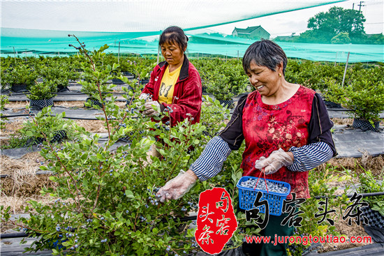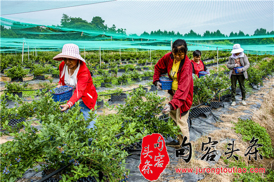 句容头条讯 2022年6月12日,南京市溧水区晶桥镇金晶苗木种植专业合作社的果农们正在采摘蓝莓。这里百亩蓝莓进入采摘期。