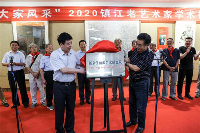 镇江市文联党组副书记、主席、文艺界党委书记张志耕在致辞中说,镇江美术源远流长、独树一帜,传承着镇江这座历史文化名城的精神基因,在中国美术殿堂中占据重要位置。自清乾隆中期延续到道光末年的“京江画派”,被誉为中国古代画坛最后一个山水画派。“新京江画派”是镇江文化复兴的体现,新京江画派艺术研究院的成立意味着这一复兴有了依托的载体,是一种文化的传承与创新,是增强镇江文化软实力的适时之需和必然之举。他表示,近年来,广大美术工作者认真贯彻党的文艺方针,用多彩的画笔、鲜活的形象,展示美好生活,反映时代变迁,推动镇江美术事业实现了历史性突破。美术创作的题材不断丰富,涌现出一大批精品力作;坚持面向基层、服务群众,“乡村文艺提升”“美术支教”等惠民活动开展得有声有色,让群众得到艺术的熏陶和美的享受;美术人才队伍不断壮大,老一辈美术家青春焕发,一批中青年美术人才脱颖而出、展现风华,镇江市美术事业呈现生机勃勃、欣欣向荣的良好局面。他希望全市广大文艺工作者从老一辈艺术家的艺术和人生中汲取营养和经验,自觉肩负起新时代赋予的历史使命与责任。要始终坚定文化自信,坚持以人民为中心的创作导向,坚持“二为”方向和“双百”方针,坚持创造性转化、创新性发展,大力弘扬社会主义核心价值观,努力学习老一辈艺术家“一心一意跟党走”、热爱祖国、热爱人民的坚定信念,学习他们精益求精、千锤百炼的艺术品格,学习他们善于继承借鉴、勇于开拓创新的艺术追求,学习他们追求形质兼美、德艺双馨的人格风范,努力践行“爱国为民、崇德尚艺”的文艺界核心价值观,创作更多讴歌党、讴歌祖国、讴歌人民、讴歌英雄的精品力作,做有信仰、有情怀、有担当的新时代文艺工作者,为新时代社会主义文艺事业繁荣兴盛作出新的更大贡献。