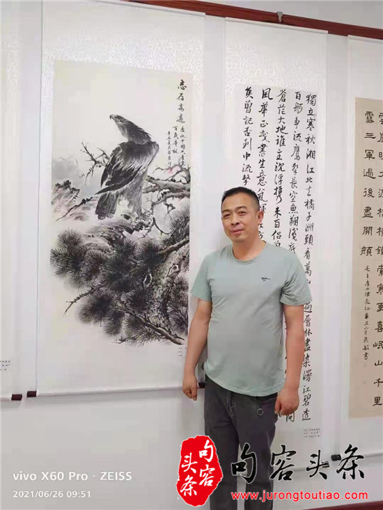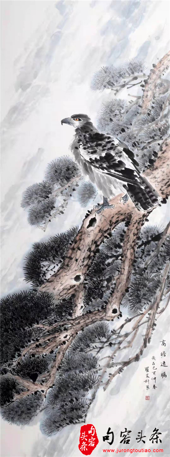 花鸟画中的物是画家的自我写照,是画家托物言志,借其抒情。观罗农科的花鸟图,多画雄鹰居高,白鹤倚松,灰鹭踏雪,雄鸡斗虫,不仅志存高远,意境幽深,还颇有自然趣味。尤其是他画中雄鹰的眼睛,并不像其它书画家描绘得凶狠傲气,反倒有一种温和宁静、眺望远方的开阔之感,罗农科也像是他画中的雄鹰一样,志存高远,心胸开阔,温和宁静,待人随和。(图文/毕庆元 蒋梦雨)