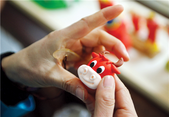 面塑“福牛”迎新年