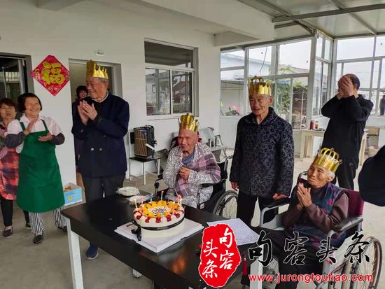 镇江大吕村为民养老院为四位高寿老人庆生,同庆党的百岁华诞
