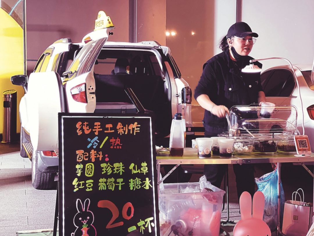 夜幕下,一群人敞开后备箱