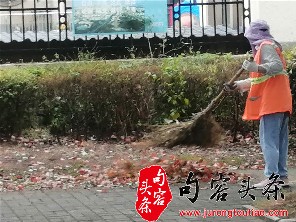 一夜风雨,句容城管全力清扫雨后落叶保障市容环境