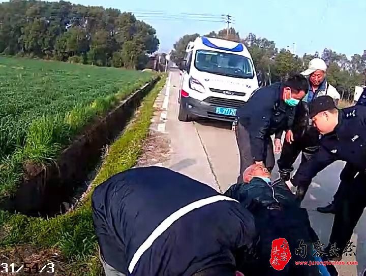 惊险!老人骑车甩进水沟! 暖心!警民火速救援老人!