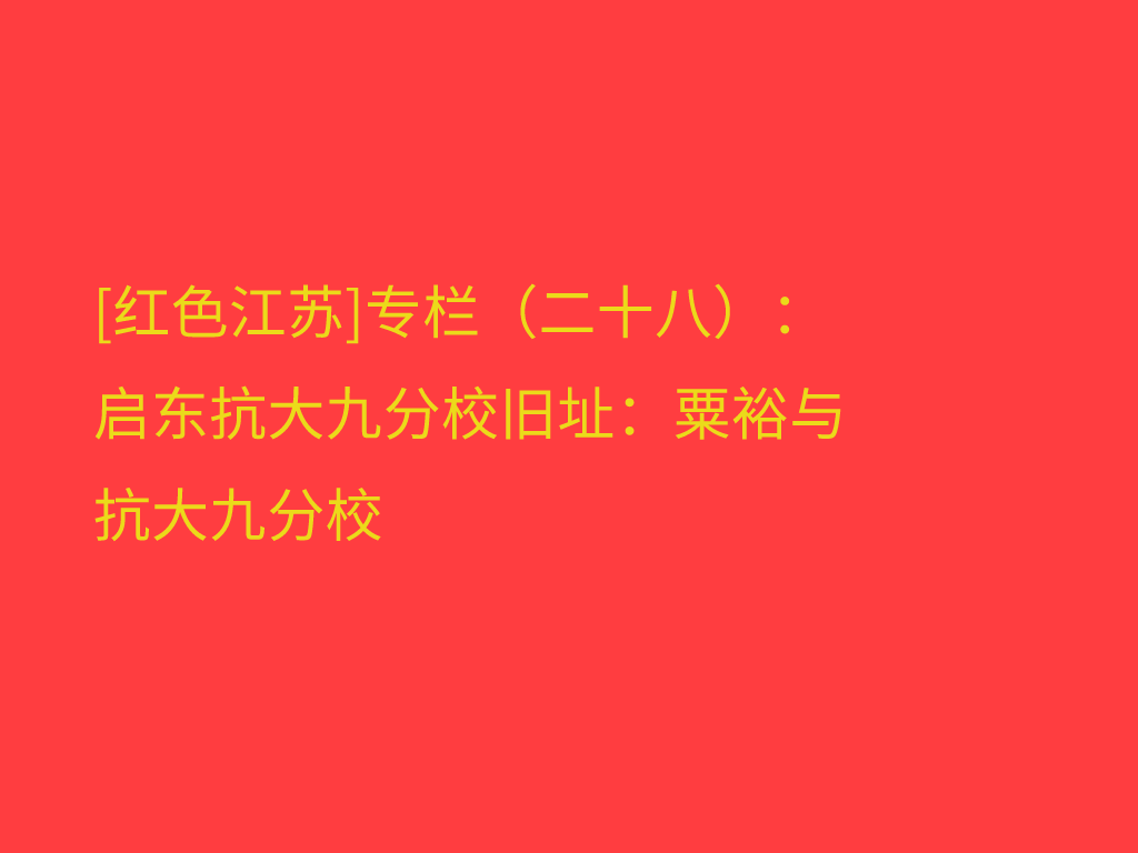 [红色江苏]专栏(二十八):启东抗大九分校旧址:粟裕与抗大九分校