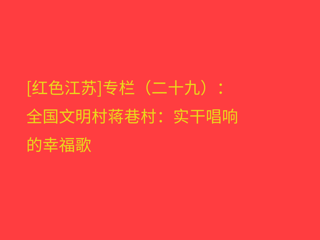 [红色江苏]专栏(二十九):全国文明村蒋巷村:实干唱响的幸福歌